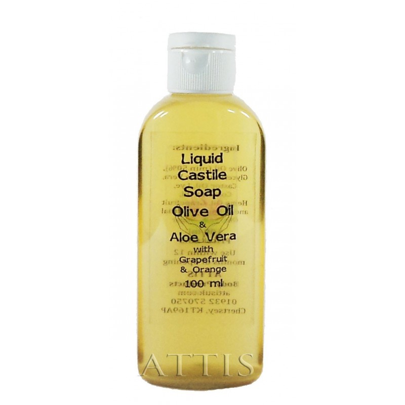 Ingredients: Water, Olive Oil (min. 50%), Glycerine, Aloe Vera, Castor Oil, Lye, Coconut Oil, Hemp Oil, Grapefruit and Orange Essential Oil, Salt, Sugar