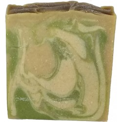 Organic Coconut Oil, Olive Oil, Palm Oil (respnsibly sourced), Cocoa Butter, Castor Oil, Shea Butter, Water, Lye, Silk, Aloe Vera, Soya Wax, Calendula, Honey, Green Tea, Gotu Kola, Glycerine, Bee Polen, Rice powder, Orange powder, Oat powder, Coconut Milk, Turmeric powder, Cucumber, Green Oxide, Kaolin Clay, French Green Clay, Ghassoul Clay; Essential Oils: Lemon, Lavender, Cinnamon, Fennel
